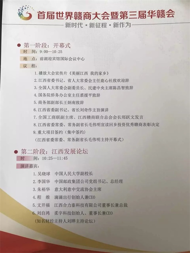 會議以“情系江西、共謀發展”為主題,就是要以“鄉情、親情、友情”為紐帶,與各位贛商贛才和僑商僑智共敘情誼,進一步加強交流、增進感情;就是要廣泛凝聚世界贛商力量,齊心協力重振“江右商幫”歷史輝煌;就是要為贛商贛才和僑商僑智搭建平臺,提供高效優質服務,形成萬商入贛、英才來贛、合作興贛、共謀發展的良好局面,加快建設富裕美麗幸福江西。