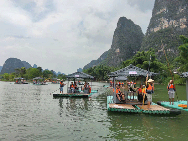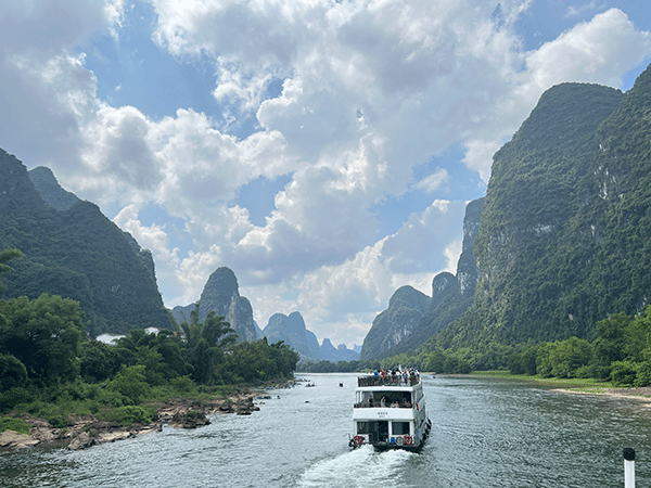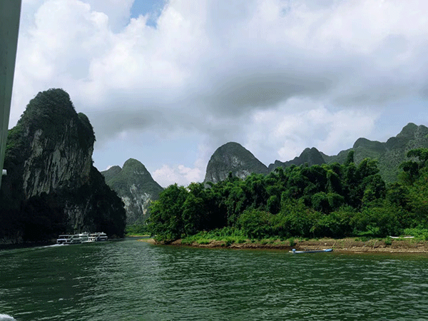 第一站,乘坐四星豪華船游覽國(guó)家5A級(jí)景區(qū)--美麗迷人的漓江。桂林山水以“山青、水秀、洞奇、石美”著稱。百里漓江“水繞青山山繞水,山浮綠水水浮天”。漓江的水,蜿蜒曲折、明潔如鏡、洞幽景奇、瑰麗壯觀。伙伴們置身于美景之中,享受著大自然的沐浴,褪去平日里的繁忙疲憊,怡然自得;舟行碧波中,人在畫中游,風(fēng)景美如畫,在藍(lán)天白云,綠水青山的映襯下,一切都是那么靜謐美好......