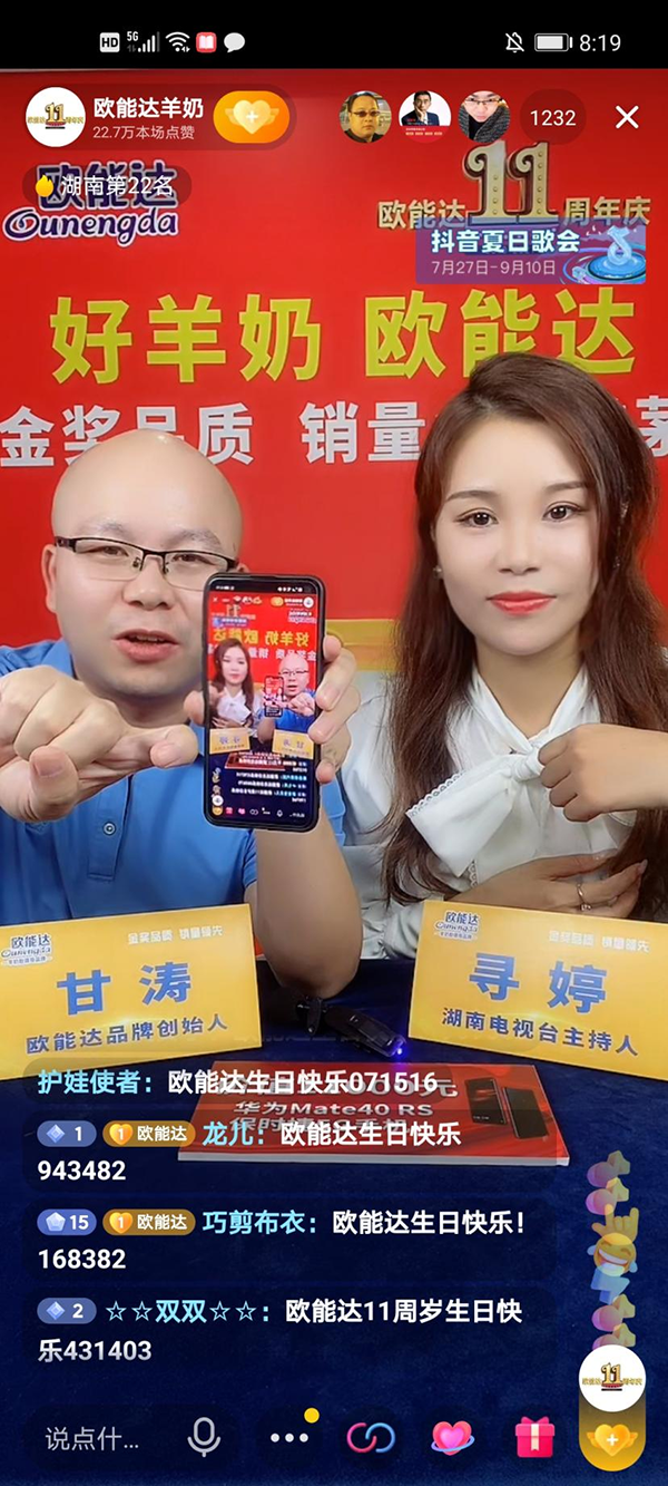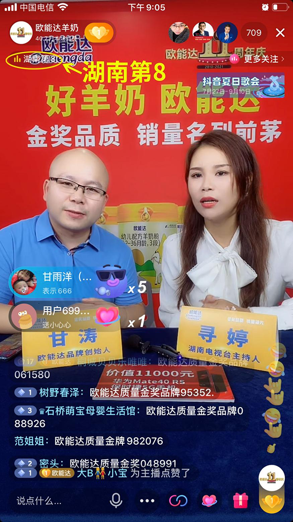 2021年8月1日20:00整,羊奶粉領(lǐng)軍品牌【歐能達(dá)】11周年慶直播首秀正式開(kāi)播,直播總時(shí)長(zhǎng)100分鐘。歐能達(dá)直播首秀,獲得湖南地區(qū)人氣榜第8名,直播成就超過(guò)了99.99%同級(jí)別主播,觀看直播總?cè)藬?shù)近萬(wàn)人次。