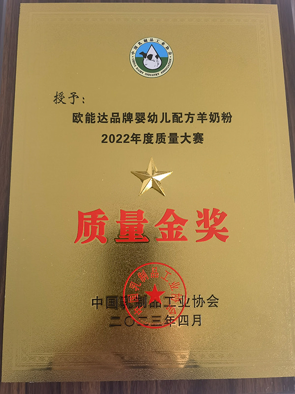歐能達(dá)品牌繼2017、2018、2019、2020、2021、2022連續(xù)六年獲得“全國(guó)主流嬰幼兒配方奶粉品牌質(zhì)量大賽”的“質(zhì)量金獎(jiǎng)”殊榮!2023年又繼續(xù)第七年榮獲此項(xiàng)大獎(jiǎng)!
