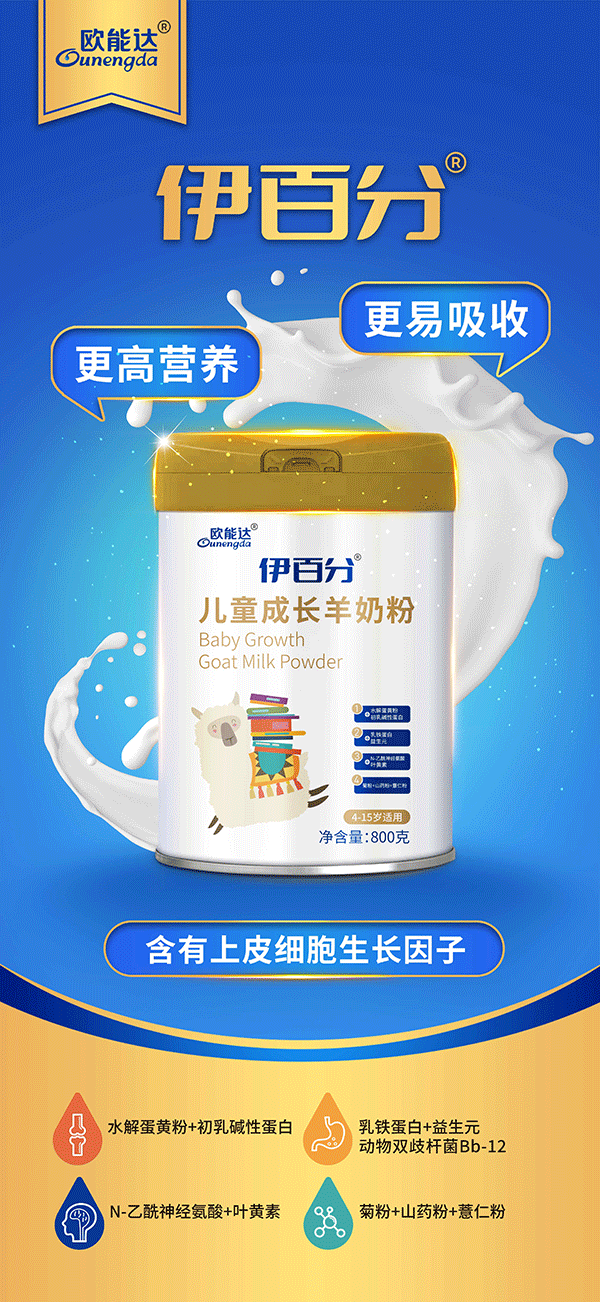 羊奶粉領(lǐng)軍品牌、質(zhì)量金獎(jiǎng)品牌【歐能達(dá)】,專注羊奶粉行業(yè)十余年,旗下除擁有卡迪夫、哈唯羊奶粉子品牌外,還擁有艾達(dá)、康達(dá)力等多個(gè)成人羊奶粉子品牌,現(xiàn)在,歐能達(dá)兒童粉新寵——伊百分兒童粉震撼上市,歐能達(dá)全家族系列羊奶產(chǎn)品覆蓋嬰幼兒、兒童、學(xué)生、成人以及中老年等各階段人群。