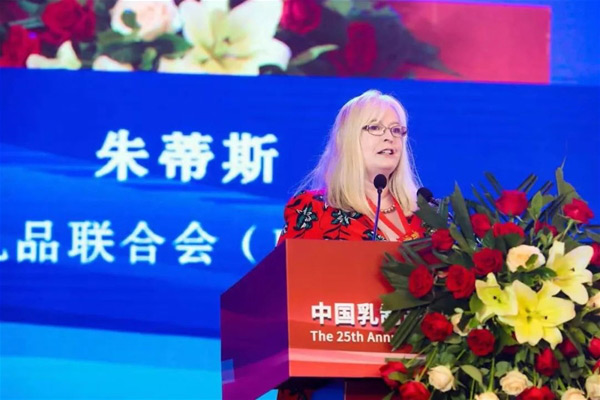 國際乳品聯合會(IDF)主席朱蒂斯·布萊恩(Judith Bryans)在年會論壇發言表示,全球畜牧行業壓力增大,全球乳制品行業需要攜手合作,改善生態環境,保障產品安全及營養,提升人民生活水平,助力人民擺脫貧困。朱迪斯提到,部分國家認為乳制品含有飽和脂肪酸而忽略了乳制品富含營養,行業要引導政府有關部門和消費者妥善對待乳制品。