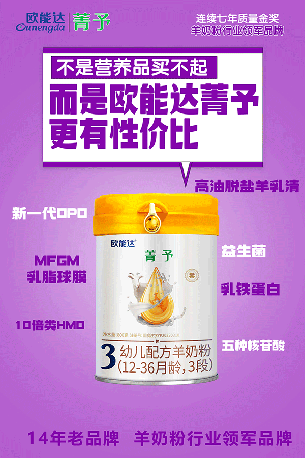 ?#歐能達(dá)? 連續(xù)7年質(zhì)量金獎(jiǎng) 羊奶粉行業(yè)領(lǐng)軍品牌