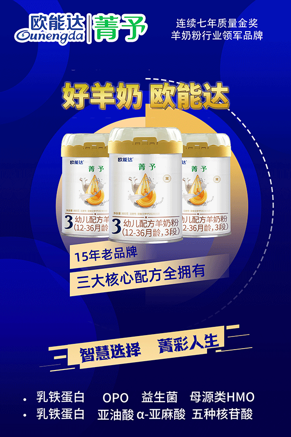 #歐能達菁予羊奶粉,連續七年質量金獎,15年老品牌超靠譜~