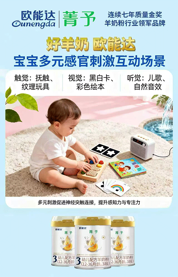 通過撫觸、紋理玩具激活觸覺,黑白卡、彩色繪本喚醒視覺,兒歌、自然音效豐富聽覺,多元刺激促進神經(jīng)突觸連接,讓寶寶感知力、專注力同步提升~#歐能達科學育兒